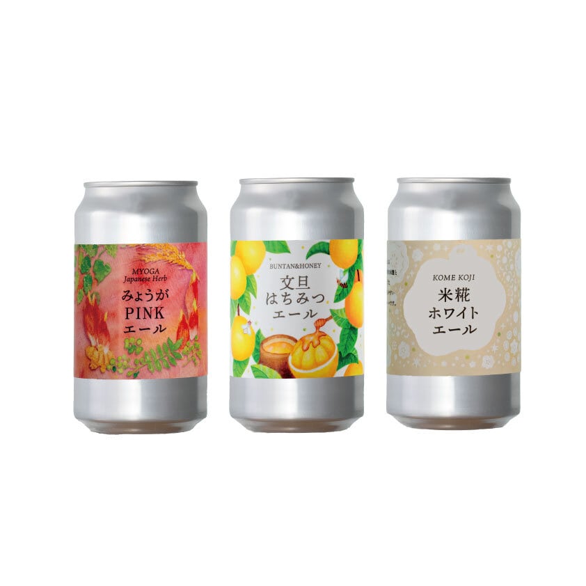 みょうがPINKエール・文旦はちみつエール・米糀ホワイトエールがセットになった、飲み比べにおすすめのセットです。